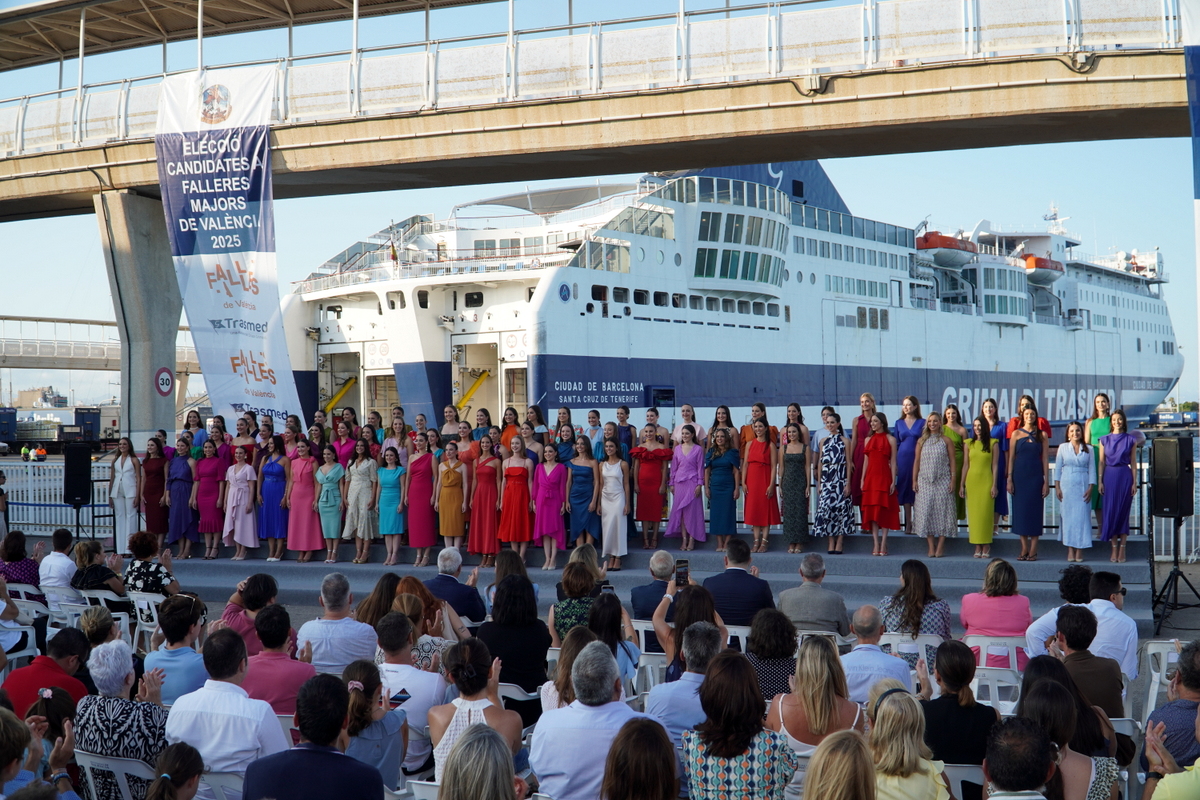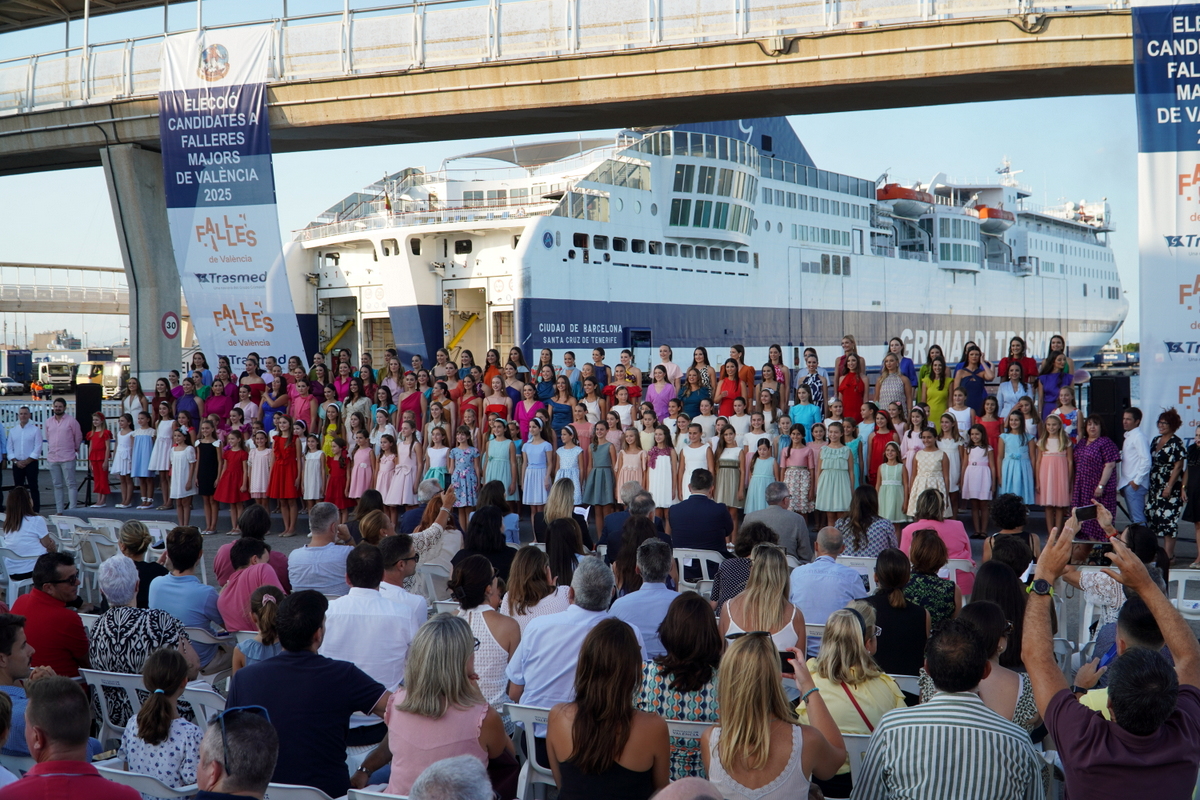 Fotos: Antonio Cerveró.- La terminal de Trasmed en el Puerto de Valencia, sede del Grupo Grimaldi en España, ha sido el escenario, este viernes por la tarde, del acto de presentación de las candidatas a Falleras Mayores de Valencia 2025 a los jurados que tendrán la difícil misión de escoger a las nuevas máximas representantes de las Fallas.