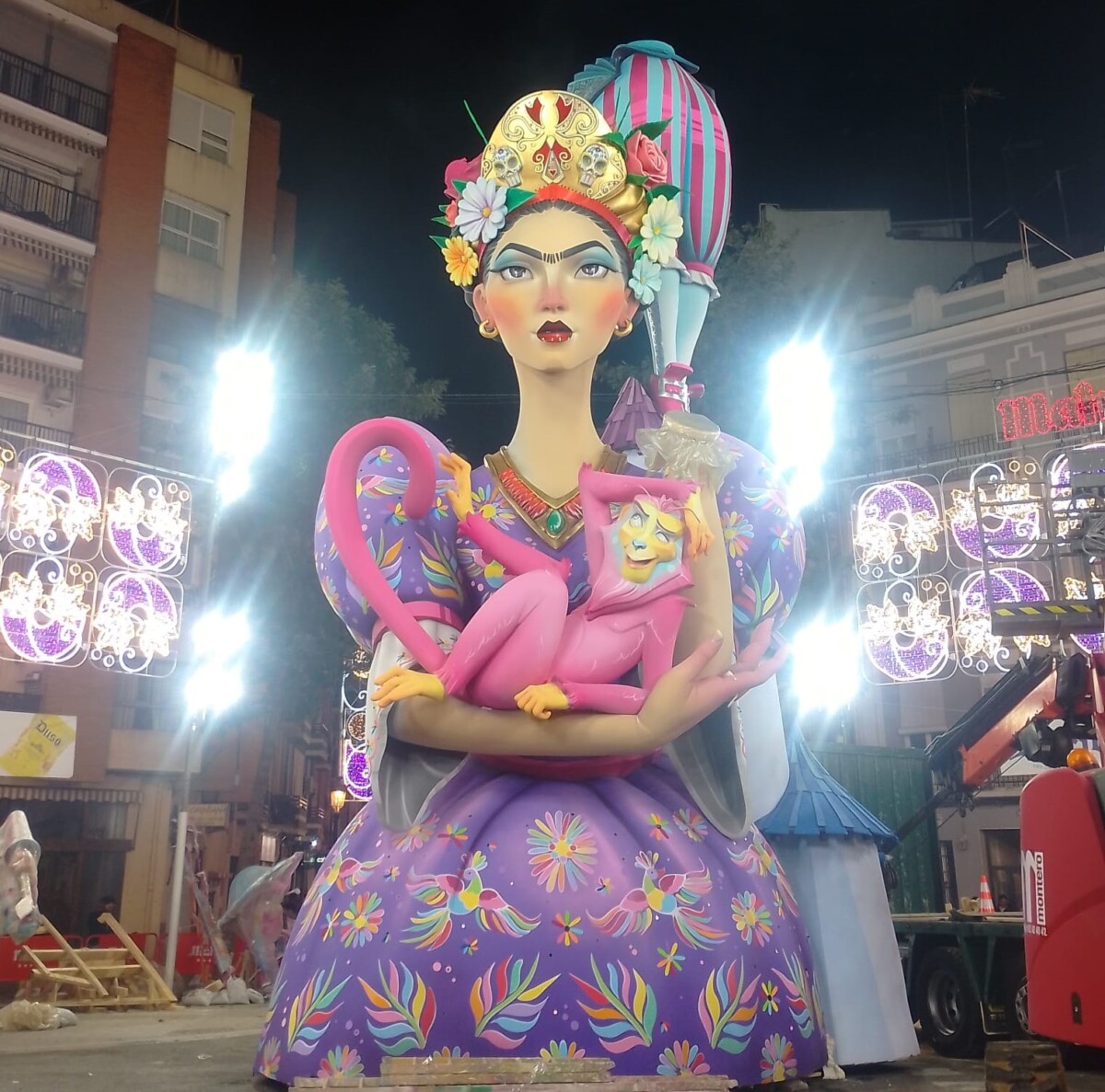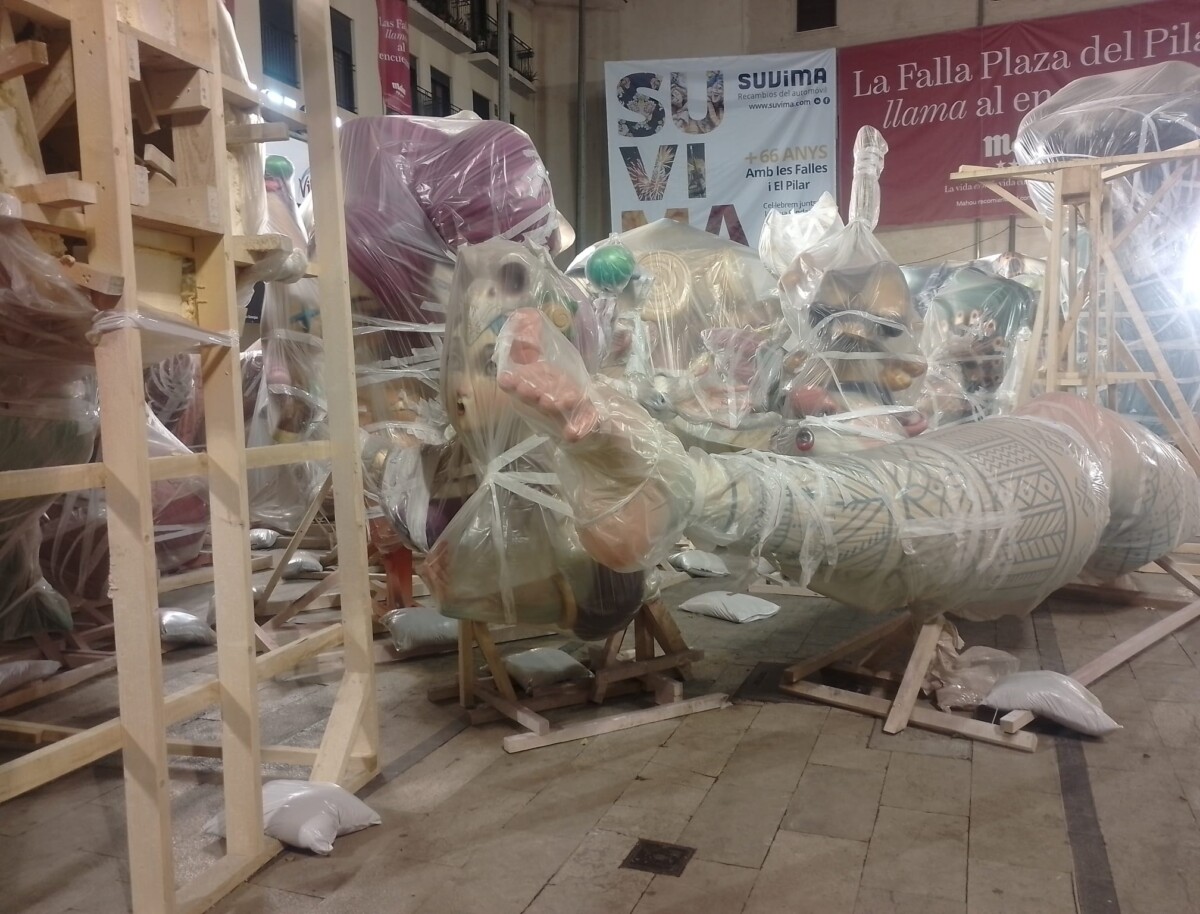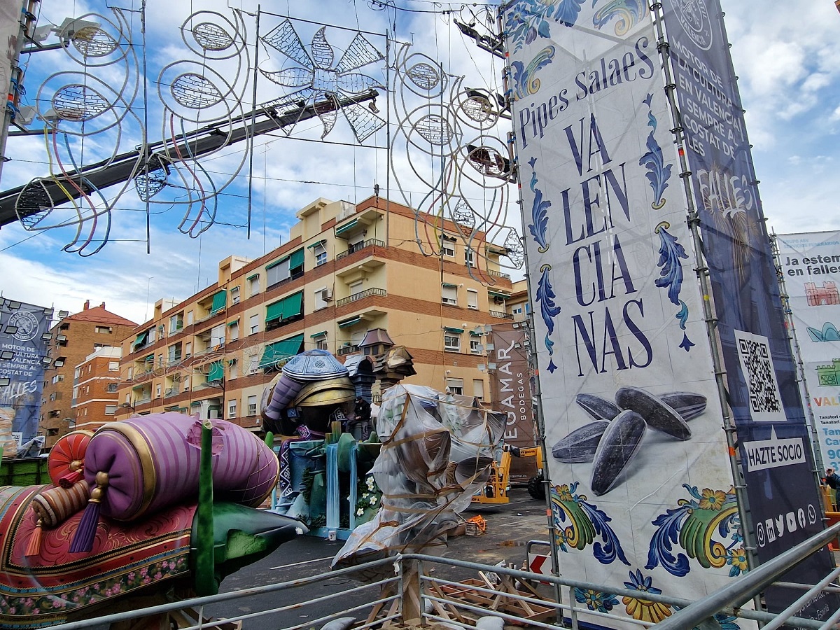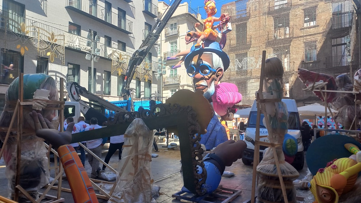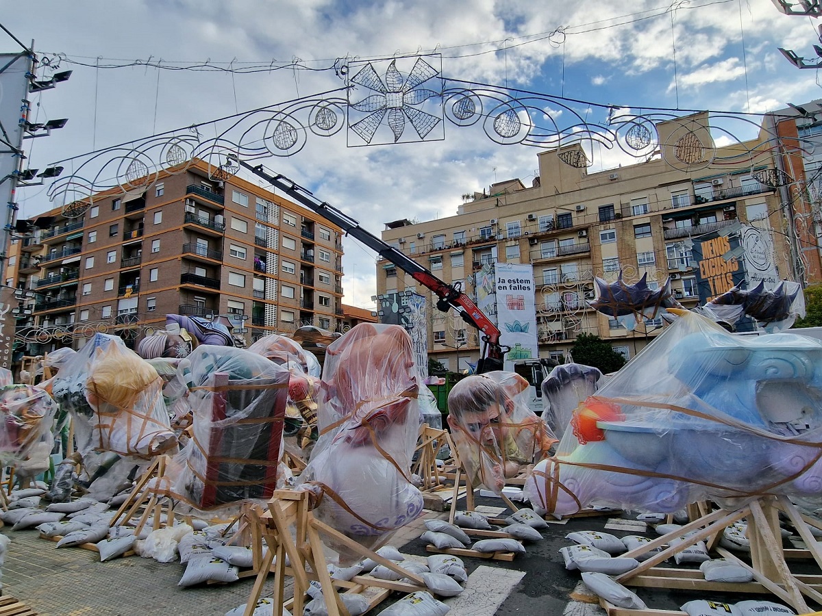 Y comenzamos nuestro viaje por Campanar, un barrio que apenas se ha repuesto de la tragedia y cuya larga tradición fallera se ve reflejada ya en las primeras piezas llegadas a la confluencia de las calles Monestir de Poblet y Aparicio Albiñana, demarcación de la más conocida como falla L’Antiga Campanar. El comienzo de un periplo por la Valencia fallera en construcción.