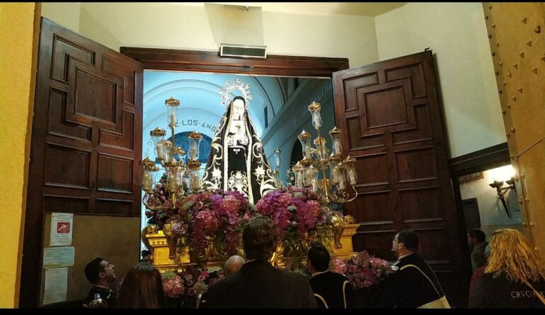 La procesión, que se iniciará tras la misa que oficiará el consiliario y párroco de la Iglesia de los Ángeles, Fernando T. March, recorrerá las calles de la feligresía con el paso de la Dolorosa a costal, en el 80 aniversario de su ejecución por el escultor Francisco Teruel y escoltada por varios agentes de la Policía Autonómica, como guardia custodios, y con la presencia de la Comisaría Jefe del cuerpo autonómico de la Generalitat Valenciana, Marisol Conde.