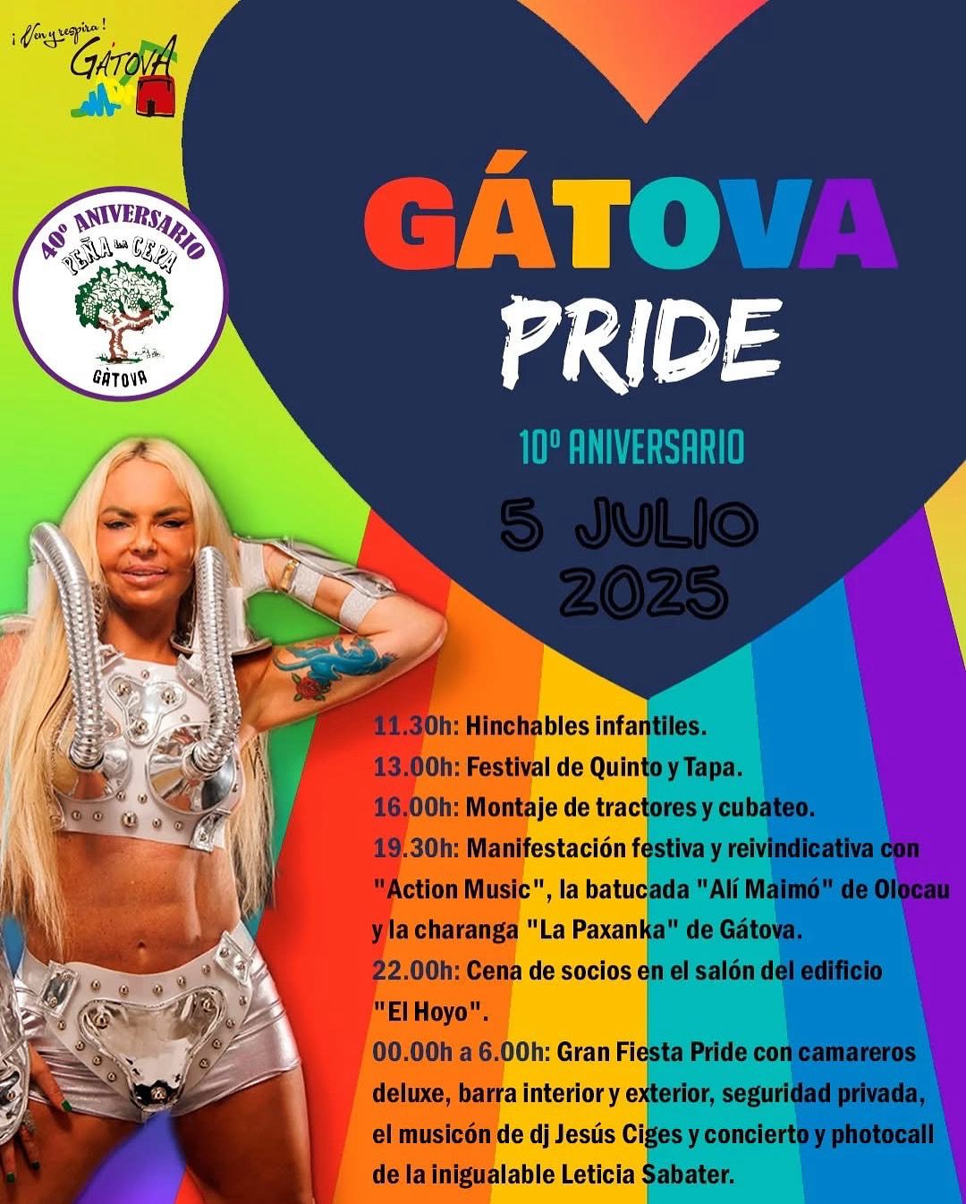 Este sábado 5 de julio, Gátova volverá a llenarse de color, música y diversidad con la celebración del Gátova Pride, que cumple este año su décima edición, coincidiendo además con el 40 aniversario de la Peña La Cepa, entidad organizadora del evento.