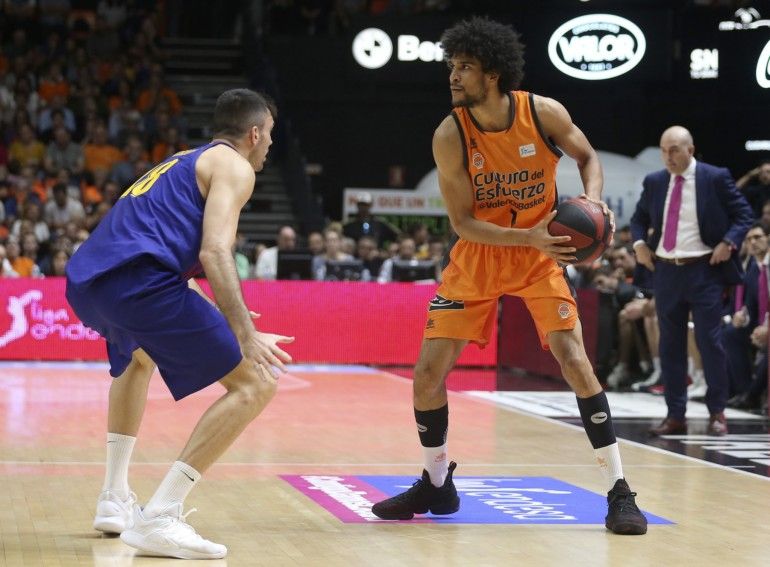 A partir de ahí, la defensa taronja consiguió forzar el error blaugrana hasta poner por delante al Valencia Basket con 20-18 en el minuto 8. Tras la reacción catalana, otro triple de Labeyrie paró el luminoso en 23-22 al final del primer cuarto.