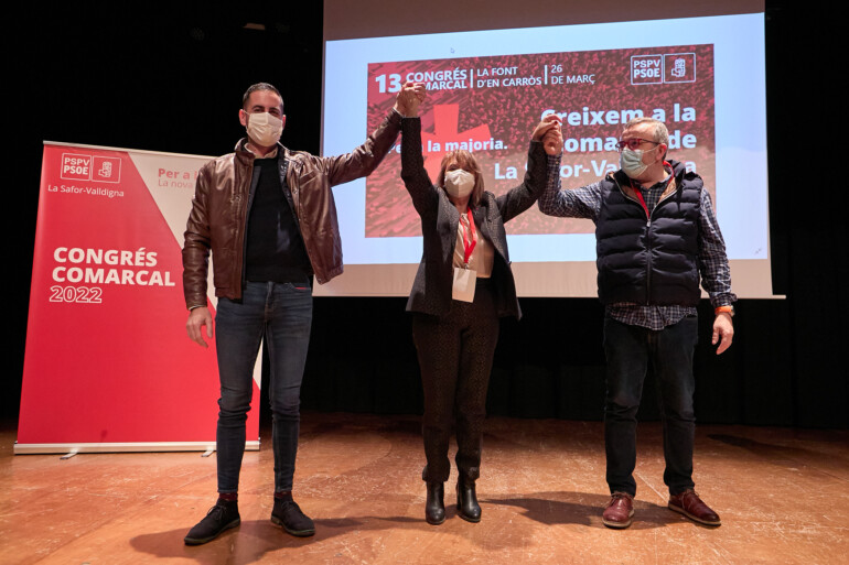 En el XIII Congreso del PSPV-PSOE de la Safor-Valldigna, que ha estado presidido por el secretario autonómico de Promoción Institucional, Comunicación y Prospectiva y militante del PSPV-PSOE de Gandia, Alfred Boix, han intervenido el vicepresidente de la Diputación de Valencia y secretario general del PSPV-PSOE de la Provincia de Valencia, Carlos Fernández Bielsa; la secretaría autonómica de Cooperación y Calidad Democrática, y secretaria de Transparencia y Memoria Democrática de la Comisión Ejecutiva Nacional del PSPV-PSOE, Toñi Serna; el diputado provincial de Hacienda e Innovación, concejal Turismo y Playas, Smart City y Proyectos Europeos en el Ayuntamiento de Gandia, y secretario de Organización del PSPV-PSOE de la Provincia de Valencia, Vicent Mascarell; el secretario general saliente del PSPV-PSOE Safor-Valldigna y alcalde de l’Alqueria de la Comtessa, Voro Femenía; el alcalde de la Font d’en Carròs, Pablo Puig; y el secretario general de UGT-PV en la Ribera, la Safor, la Vall d’Albaida, la Costa y la Canal de Navarrés, Raül Roselló.