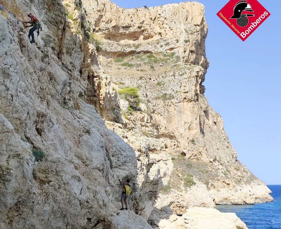 Efectivos del Consorcio Provincial de Bomberos de Alicante (CPBA) han rescatado a un hombre después de que haya quedado enriscado en un peñasco al tratar de pasar de la cala del Testos a la del Moraig, en el municipio alicantino del Poble Nou de Benitatxell.
