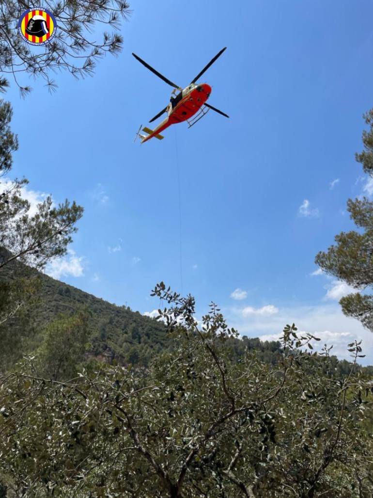 Se ha recibido a las 14:20 horas, y el Consorcio ha movilizado hasta allí a su grupo de rescate en altura GERA con helicóptero del Consorcio y médico de a bordo, dotación de bomberos de Xàtiva y jefe de sector.