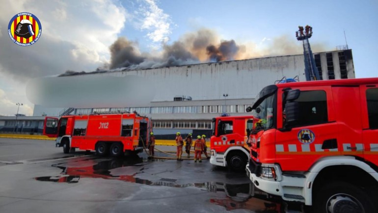 Los bomberos del Consorcio siguen trabajando esta mañana por sofocar el incendio declarado en la tarde de este miércoles en una nave del centro logístico de Mercadona en el polígono L’Oliveral, de Riba-roja de Túria. La última hora, según informaciones del Centro de Coordinación de Emergencias de la Generalitat, es que el incendio se ha reactivado en la nave central, por lo que cinco dotaciones más del Consorcio se han sumado a las que ya estaban trabajando sobre el terreno desde esta mañana.