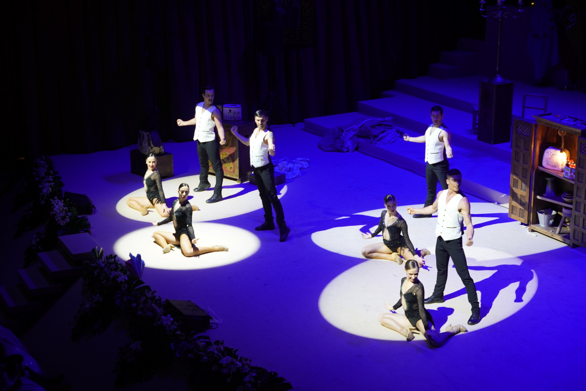 JM Gestión Teatral, la compañía encargada de poner en escena el espectáculo de la Exaltación, desplegaba sobre el escenario de la sala Iturbi una amalgama de números de circo, danza, magia y canciones, girando todo el conjunto sobre la idea, concepto y objetivos de una Valencia más sostenible y verde, una Valencia Capital Verde Europea, por un lado; y también la importancia de luchar por lograr los sueños personales, como el que Marina García Arribas tuvo desde que era muy pequeña de llegar a ser Fallera Mayor Infantil de Valencia. Los sueños se hacen realidad.