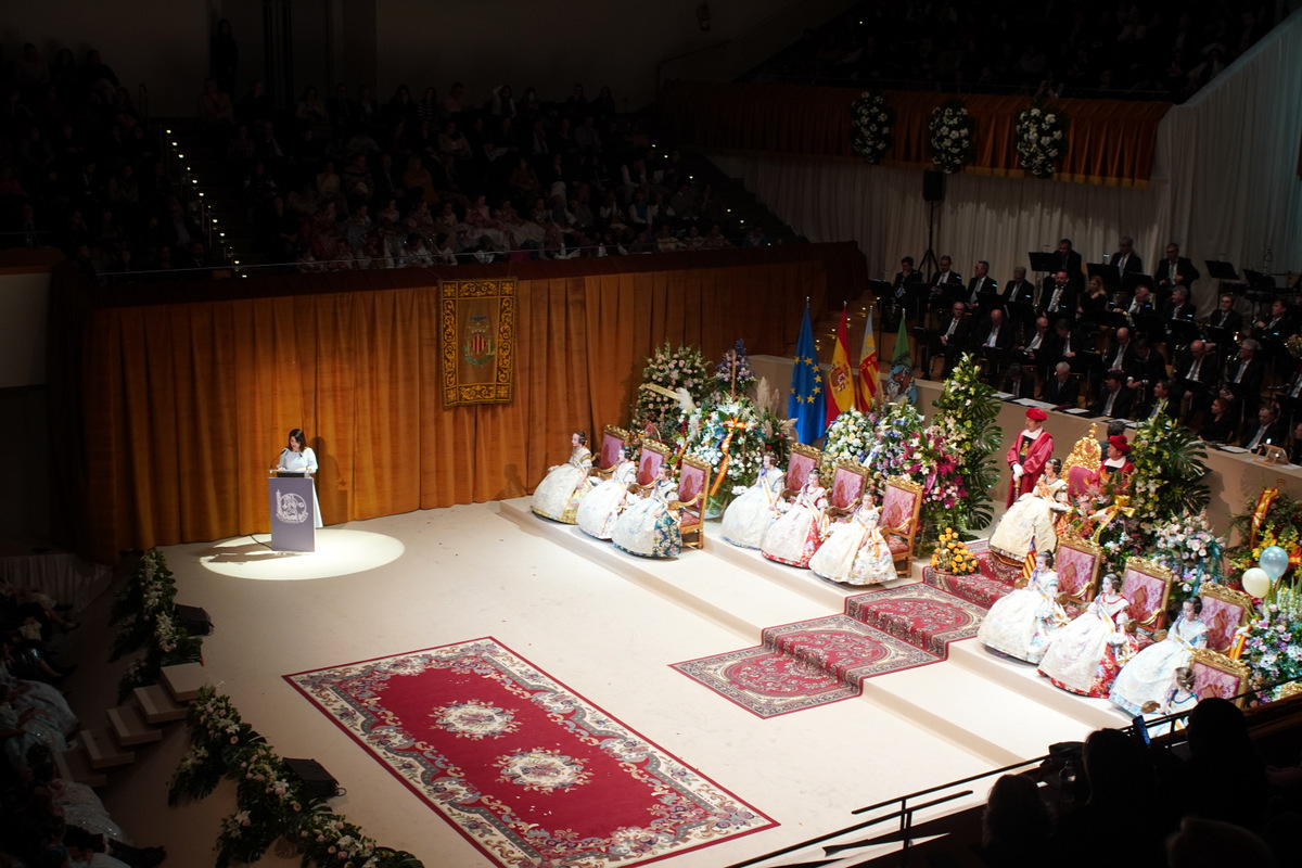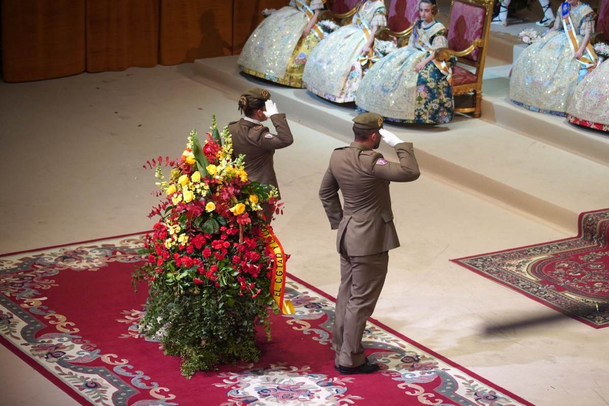 Con el cuadro de honor ya completo sobre el escenario, en una bellísima estampa que recogía la exultante infancia fallera de la ciudad, comenzaba la emotiva expresión del pueblo valenciano agasajando a su nueva regina infantil de las fiestas josefinas, en forma de ofrenda floral. Y es que Valencia es tierra de flores, como firma el pasodoble.