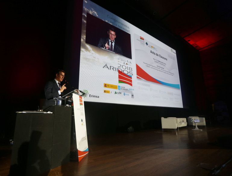 El presidente de la Xunta de Galicia, Alberto Núñez Feijoo, fue el encargado de clausurar el congreso y en su intervención, ante los más 800 congresistas, ha animado al sector de los áridos a mantener la conciencia ambiental. Feijoo se ha referido de esta manera a la economía circular como uno de los principales desafíos que debe enfrentar el sector en el futuro inmediato: por la importancia misma del sector, ya que es la segunda materia prima. La mayor parte se consume después del agua y representa más del 50% de los recursos minerales consumidos. Porque la UE está definiendo la nueva política de economía circular, que obliga a una gestión de recursos más eficiente y también a aceptar la nueva realidad de la producción, y “porque ser más sostenible hoy es bueno para mañana”.