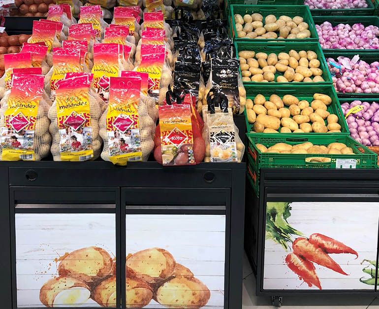 A partir del mes de mayo la compañía comienza a ofrecer patatas de proximidad en su sección de Fruta y Verdura, y se extiende hasta octubre o noviembre, en función de la producción. Como todos los años, durante la campaña española, entre mayo y octubre/noviembre, y cuando el producto cuenta con la calidad que demandan los “jefes” (clientes), hay patata 100% española procedente de diferentes comunidades autónomas.