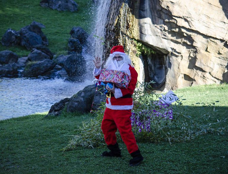 Papá Noel lleva a los animales de Bioparc Valencia sus regalos
