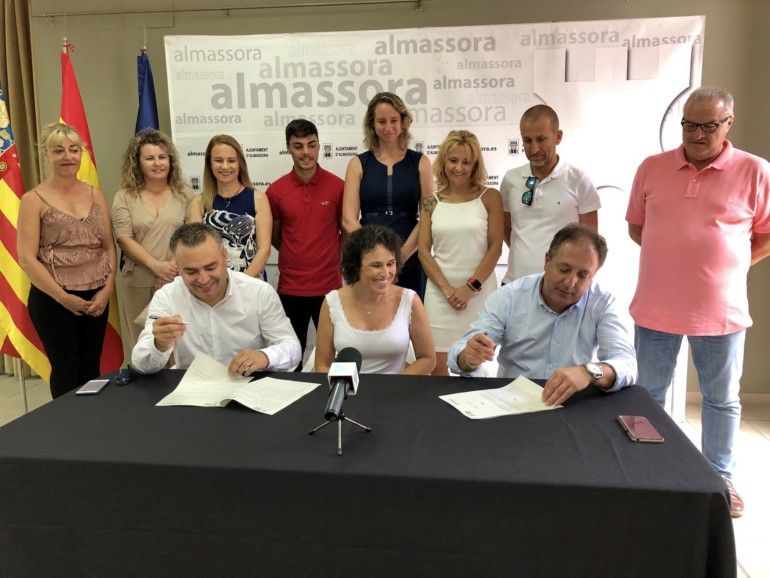 El secretari general del PSOE a Almassora, Santiago Agustí, i el coordinador de Ciudadanos, Javier Mollá, han subscrit les línies d’un projecte de govern en comú en l’edifici de Ca la Vila davant l’alcaldessa, Merche Galí, i la resta dels regidors de l’equip de govern. Els assistents s’han compromés a treballar de forma “honesta i lleial” pel futur de la localitat en un acord que es materialitzarà demà en el ple ordinari amb l’entrada de Mollá i María Luisa Renau en l’executiu local.