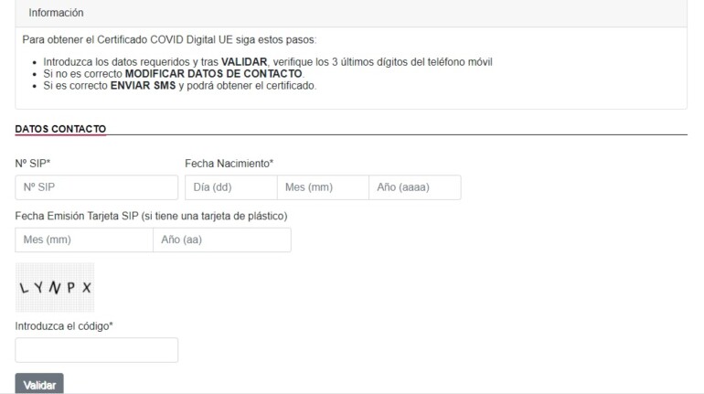 El certificado Covid es gratuito y accesible para toda la población, y para solicitarlo a través de la web de la Conselleria de Sanitat sólo se necesita el número de la tarjeta SIP, la fecha de emisión de ésta y la fecha de nacimiento de la persona que lo solicita.