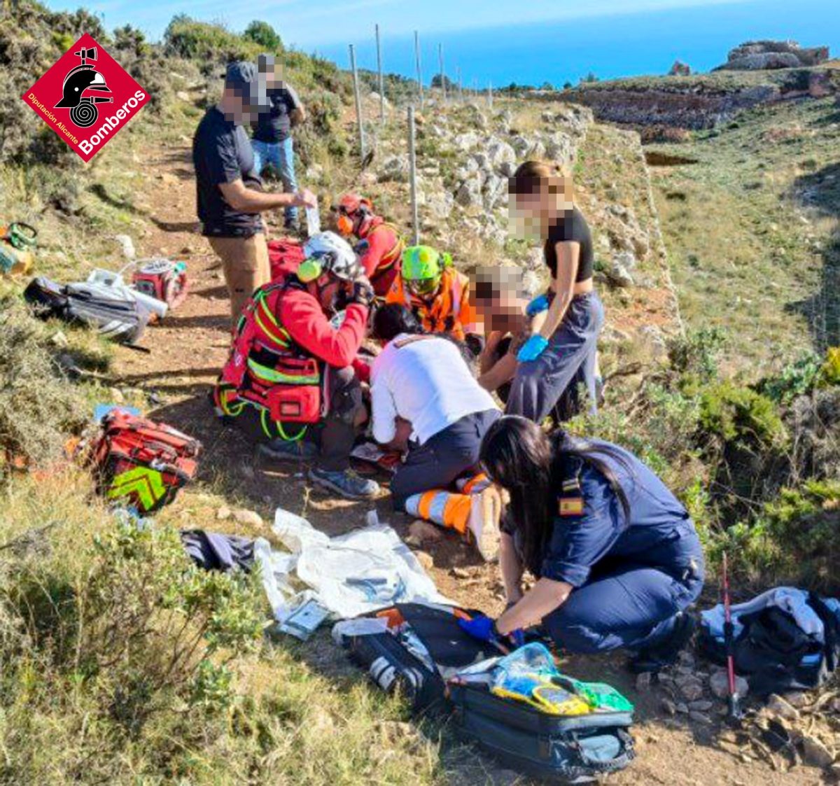 El aviso se recibió a las 13:22 horas, alertando de que un hombre se había mareado y había caído desplomado durante su caminata. Ante la gravedad de la situación, el Control-3 del Consorcio Provincial de Bomberos de Alicante (CPBA) movilizó de inmediato al Grupo Especial de Rescate (GER) con el helicóptero Alfa-1.