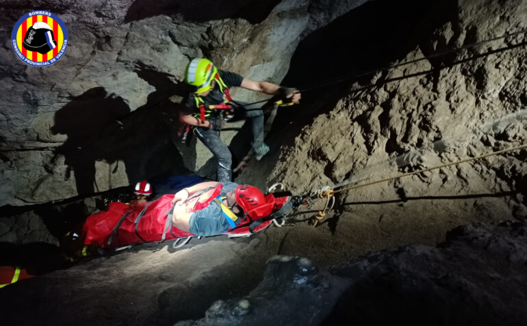 Una vez los bomberos del Consorcio, entre ellos los miembros de su Grupo Especial de Rescate GERA, accedieron al interior de la cueva y, viendo que el hombre podía tener una grave lesión en la pierna, lo inmovilizaron y aislaron térmicamente para evitarle el riesgo de hipotermia.