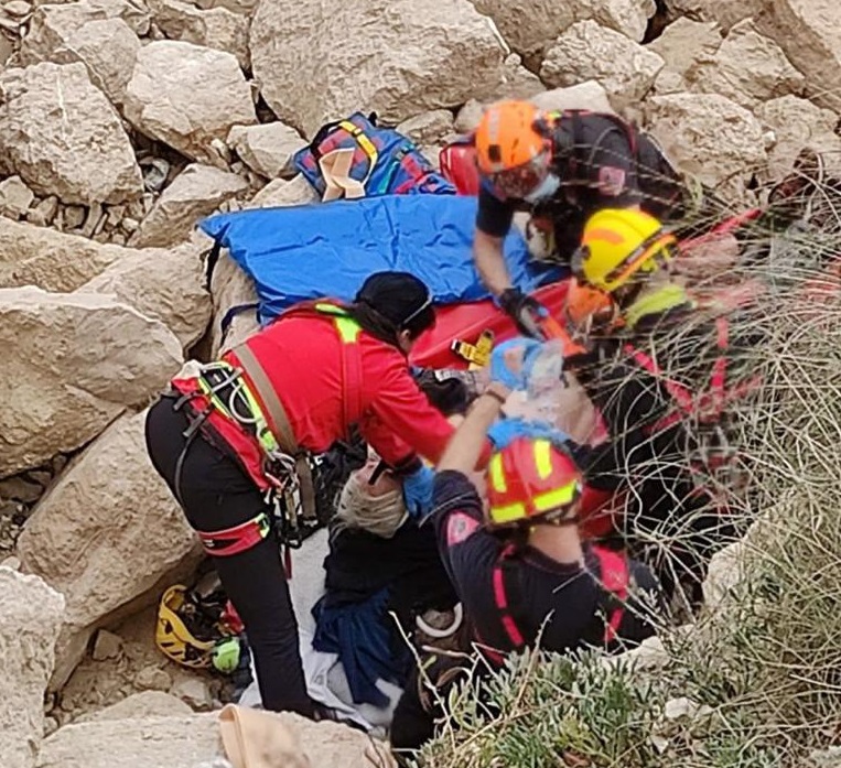 El Consorcio ha movilizado al lugar una dotación del parque de Benidorm formada por cuatro bomberos y un cabo, con una unidad de mando y jefatura (UMJ) y una bomba rural pesada (BRP). A la vista del difícil acceso por tierra, ha intervenido el helicóptero Alpha 1 de rescate con el grupo de rescate GER.