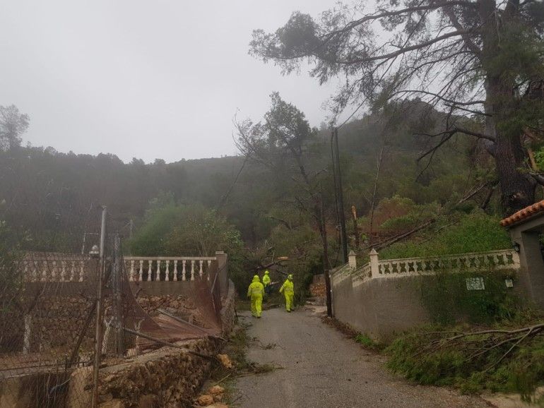 Los caminos por la Marxuquera se encontraban cortados por la caída, a consecuencia del fuerte viento, de varios árboles que impedían el paso, por lo que varias familias se encontraban en la misma situación de aislamiento.