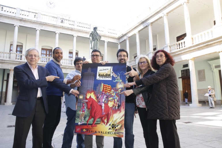 Junto a Espín, el acto también ha contado con la presencia del vicerrector de Cultura y Deporte de la Universitat de València, Antonio Ariño, el director del Salón del Cómic, Armando Nsue, y el director de contenidos del Salón, Daniel Tomás, quienes avanzaron las líneas maestras del evento del próximo mes de febrero.