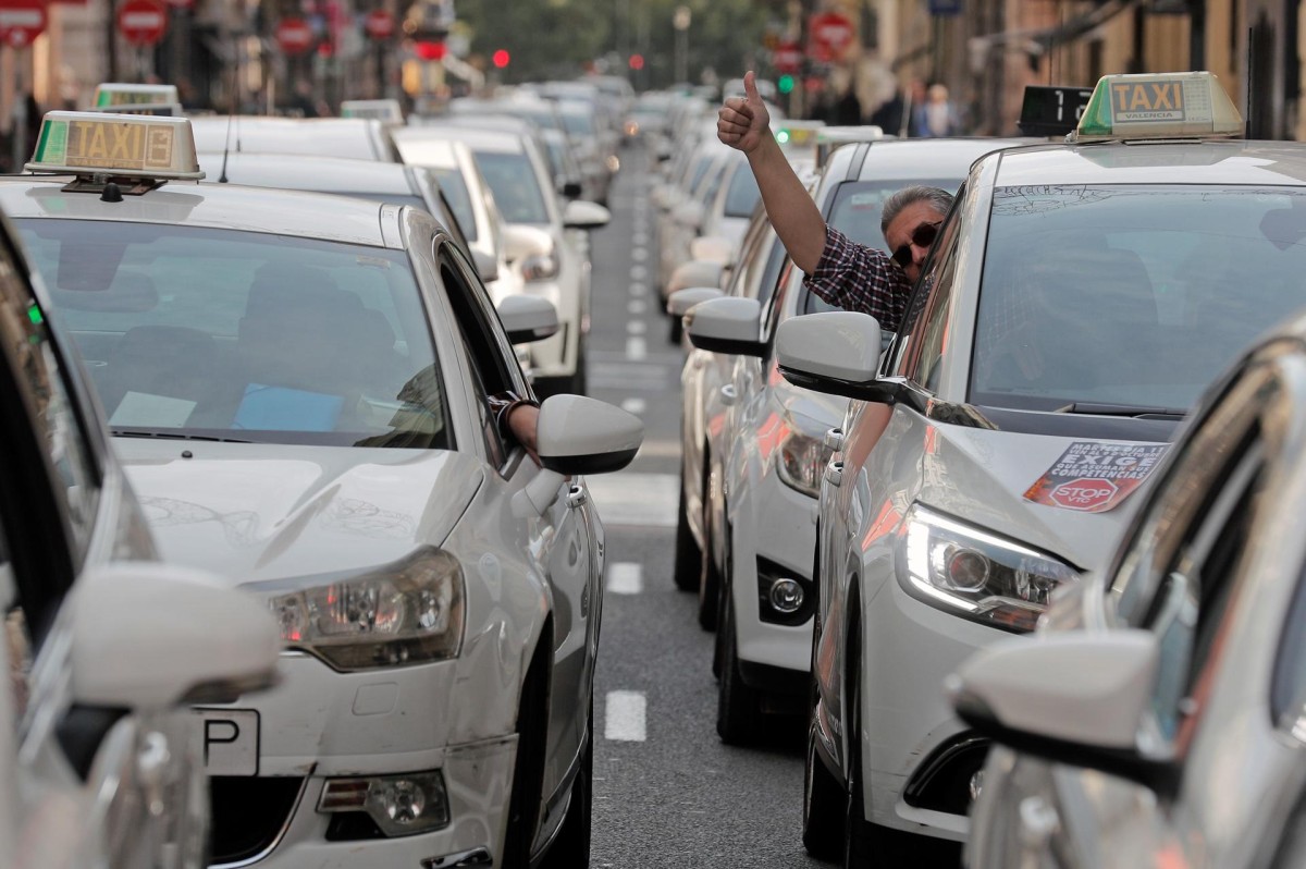 Protestas convocadas por el sector del Taxi de la Comunitat Valenciana