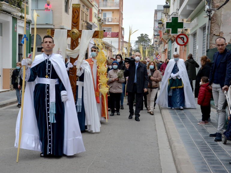 Poco después, esperaba a las puertas del Mercado del Cabanyal a las 10 horas una de las novedades de la edición de este año de la Semana Santa Marinera, tan especial como es tras 3 años de ausencia, con la concentración colectiva de todas las Hermandades y Cofradías para acudir a la Bendición de palmas y ramos de olivo, en un intento de comenzar la procesión todos juntos con toda solemnidad.