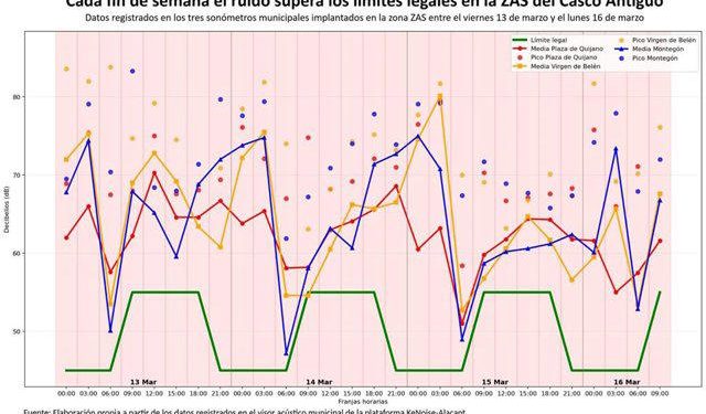L'Alacantí El PSPV asegura que el ruido en el Casco Antiguo de Alicante alcanza picos que casi duplican el límite de la ordenanza miércoles, 18 de marzo de 2026