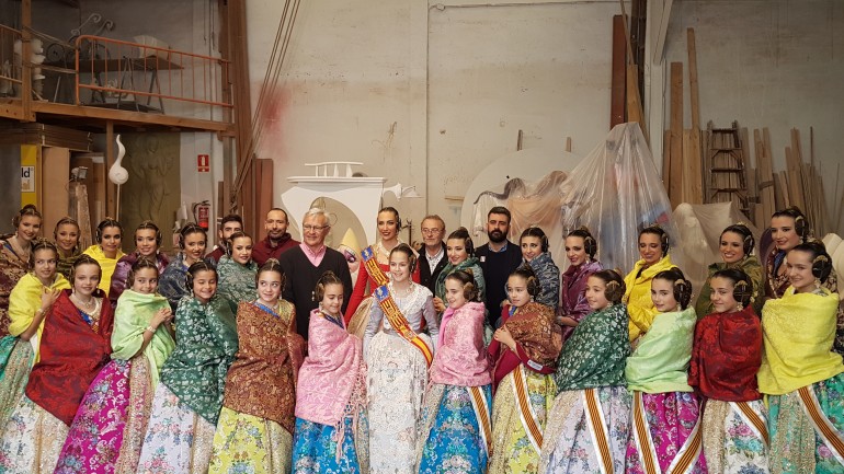 Fiestas y Tradiciones Ribó, Fuset i les Falleres Majors visiten la falla municipal al taller de Latorre i Sanz lunes, 5 de marzo de 2018