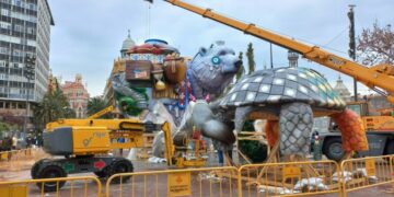 Fallas Comienza el montaje de la falla municipal de Valencia creada por Dulk y Alejandro Santaeulalia martes, 1 de marzo de 2022