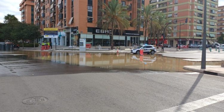Valencia ciudad El reventón de una tubería provoca el corte del tráfico en la avenida Peset Aleixandre de Valencia viernes, 13 de septiembre de 2024