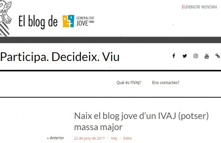 Comunitat L’IVAJ llança un blog per a promoure la participació dels joves jueves, 22 de junio de 2017