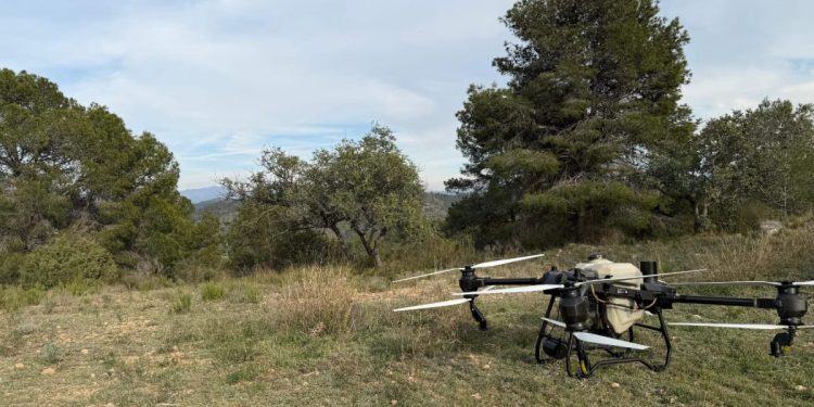 Alt Palancia Soneja utiliza drones para actuar con el tratamiento de la procesionaria de pinos en el municipio lunes, 2 de marzo de 2026
