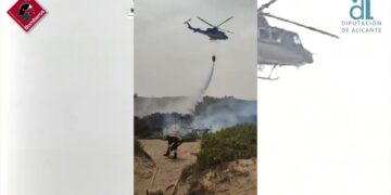 Baix Vinalopó Los bomberos extinguen un incendio declarado en la pinada de la playa del Carabassí lunes, 8 de abril de 2024