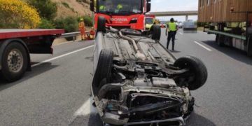 Requena - Utiel Herido un conductor tras volcar su coche en la A-3 a la altura de San Antonio de Requena lunes, 25 de mayo de 2020