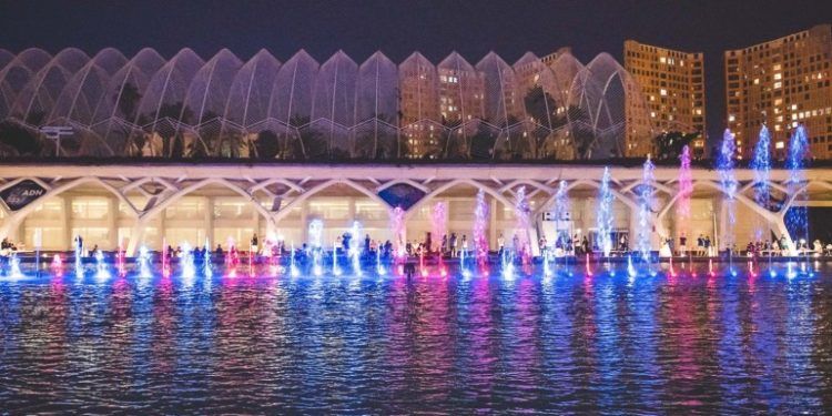 Valencia ciudad ‘Seis esculturas’ de Tony Cragg visten de luz y color el lago del Hemisfèric jueves, 2 de agosto de 2018