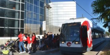 Valencia ciudad Metrovalencia activa el servicio especial de tranvía a Feria Valencia para ir a Expojove viernes, 23 de diciembre de 2022