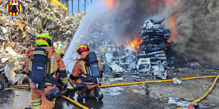 L'Horta Bomberos estabilizan un incendio en empresa de residuos de Silla tras cortar el tren de cercanías a Catarroja martes, 6 de mayo de 2025