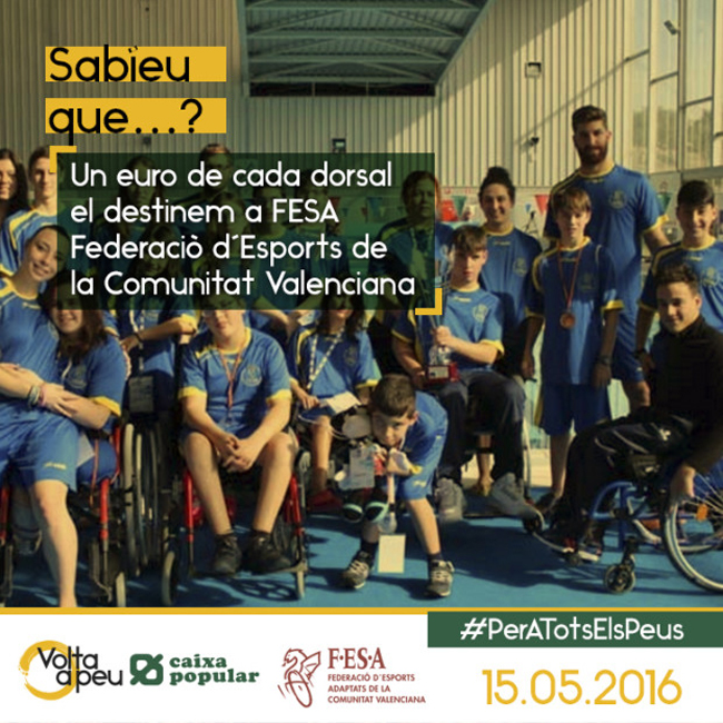 Deportes El euro solidario de la Volta a Peu Valencia irá destinado a ‘Escuelas Deporte Base’ de FESA miércoles, 27 de abril de 2016