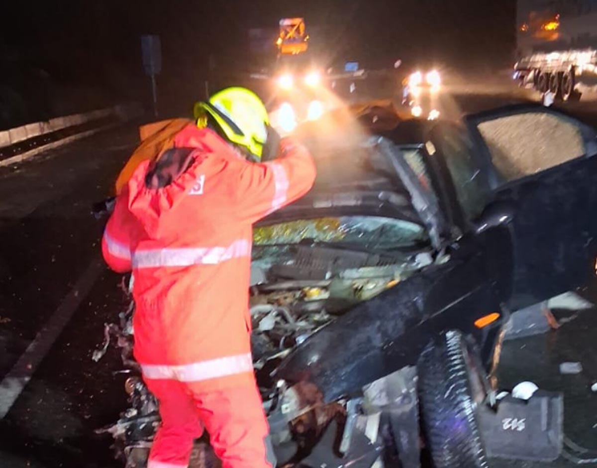 De uno de los coches implicados en el accidente, los bomberos excarcelaron a una persona atrapada y la transfirieron a los servicios sanitarios desplazados allí.