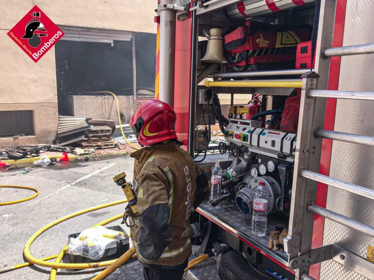 La nave, dedicada al calzado, tiene un garaje debajo y en el momento del siniestro no había nadie dentro. El fuego ha generado mucho humo y llamas.