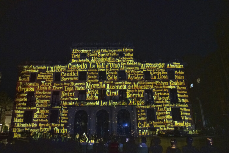 La Diputación de Castellón ha culminado este sábado la programación especial del Día de la Provincia con un espectacular videomapping sobre la fachada del Palau de les Aules dedicado al Bicentenario de la institución. Las piedras del edificio que acoge la Presidencia de la Diputación han recobrado vida por unos minutos con la proyección de imágenes y recreaciones tridimensionales que, guiadas por la voz de un narrador, han conseguido embarcar a los asistentes en un viaje por los primeros dos siglos de existencia de la corporación provincial. La actividad, que ha servido como portal de entrada a la conmemoración de los 200 años de actividad institucional de la casa de todos los castellonenses, ha sido organizada por el departamento de Cultura, liderado por la diputada Ruth Sanz.