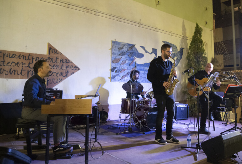 La agenda del Día de la Provincia ha acabado con un concierto íntimo de jazz en el patio del Espai Cultural Obert Les Aules. Enmarcada en la segunda jornada de la Nit de l’Art, el guitarrista Fernando Marco y su cuarteto han presentado su disco en homenaje al ‘hard bob’ titulado ‘Four on six’.