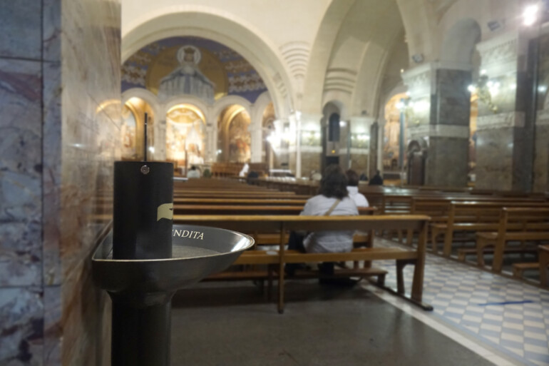 Las recomendaciones higiénicas para evitar el contagio por COVID-19 convirtieron en imposibles multitud de actos cotidianos y, uno de ellos, fue la persignación de los fieles a la entrada de las parroquias tomando agua bendita de una pila común. La Conferencia Episcopal indicó a los párrocos que retiraran esta pila de la entrada de las iglesias.