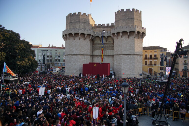 Bien pronto la explanada ahora peatonal que duerme noche tras noche ‘a la luna de València’ se llenó hasta la bandera para recibir oficialmente el beneplácito e invitación de las máximas representantes de la fiesta de las Fallas, Carmen Martín y Nerea López. Apenas habían sonado las 18 horas y ya no cabía un alfiler.