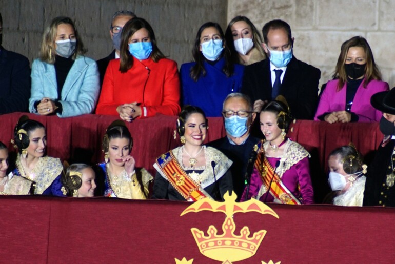 Y como si el deseo de volver a vivir ese momento mantuviera el ambiente en un equilibrio y tranquilidad perfectos, llegó el momento de ver salir al balcón habilitado al pie de las torres a las Falleras Mayores de València y a la corporación municipal al completo, con el alcalde Joan Ribó al frente, el presidente de la Junta Central Fallera, Carlos Galiana, y demás autoridades.