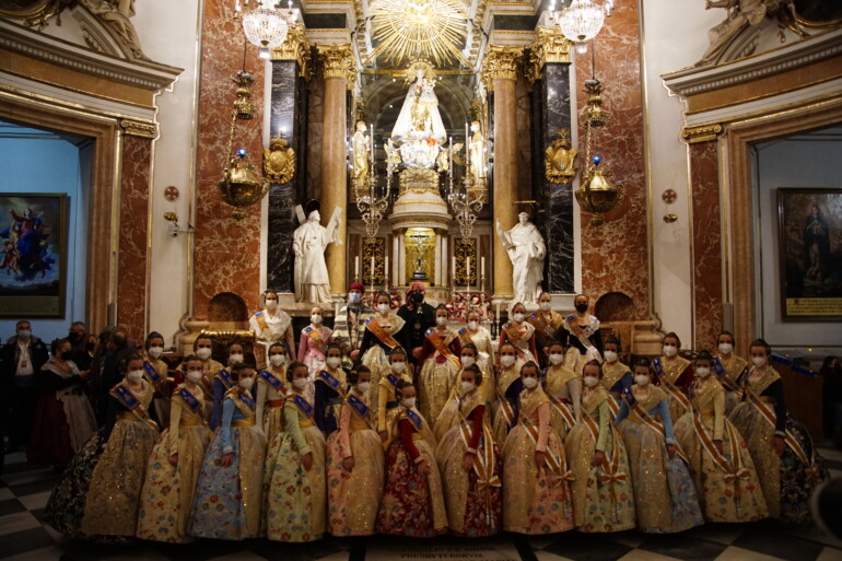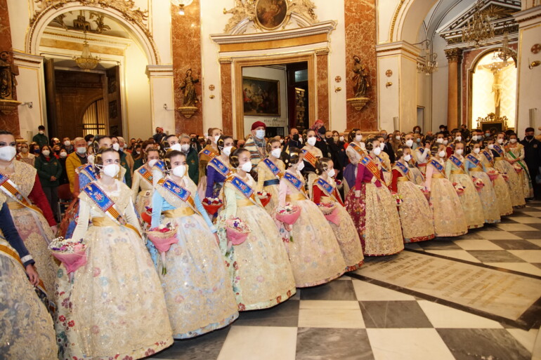 La velada acababa con las Falleras Mayores de València y sus Cortes de Honor acudiendo a pie hasta la Basílica de la Virgen de los Desamparados para ofrecer sus ramos de flores a la Mare de Déu, la Patrona de València, en un gesto que se repetirá durante la Semana Fallera en la emblemática Ofrenda y que, este año, cobra aún más significación si cabe que en otros años al haber comenzado ya a celebrarse el Centenario de su Coronación, que culminará en 2023.