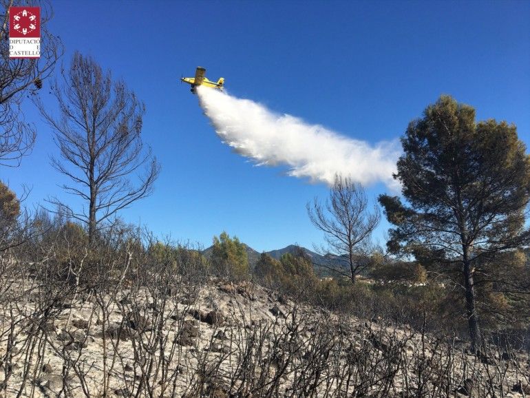 Inmediatamente se ha puesto en marcha el dispositivo de extinción con seis unidades de bomberos forestales del SGISE de la Generalitat y dos dotaciones de bomberos del Parque de Alto Palancia del Consorcio Provincial de Bomberos de Castellón, seis autobombas, un helicóptero con brigada helitransportada, tres aviones de la Generalitat (AT-50, AT C-50 y AT V-50), un vehículo del Consorcio Provincial, un coordinador forestal y un técnico forestal.