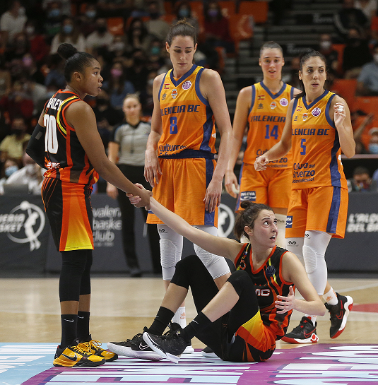 La pívot y Bentley completaron un parcial de 7-0 que reducía la diferencia a 3 puntos. El equipo taronja pasó unos minutos de dificultades ante la dureza defensiva visitante, que no se veía traducida en faltas, sí para ellas. Una racha que frenaba Ouviña desde el triple.