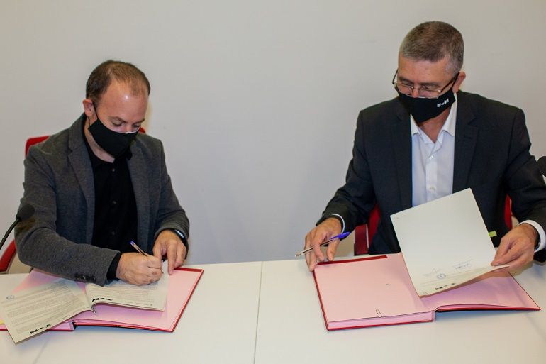 El conseller de Economía Sostenible, Sectores Productivos, Comercio y Trabajo, Rafa Climent y el director de València Capital Mundial del Diseño 2022, Xavi Calvo, han firmado esta mañana un convenio de colaboración entre el Ivace y la Associació València Capital del Disseny para la realización de proyectos y acciones que promocionen la contratación y visibilidad del diseño valenciano en los mercados exteriores.