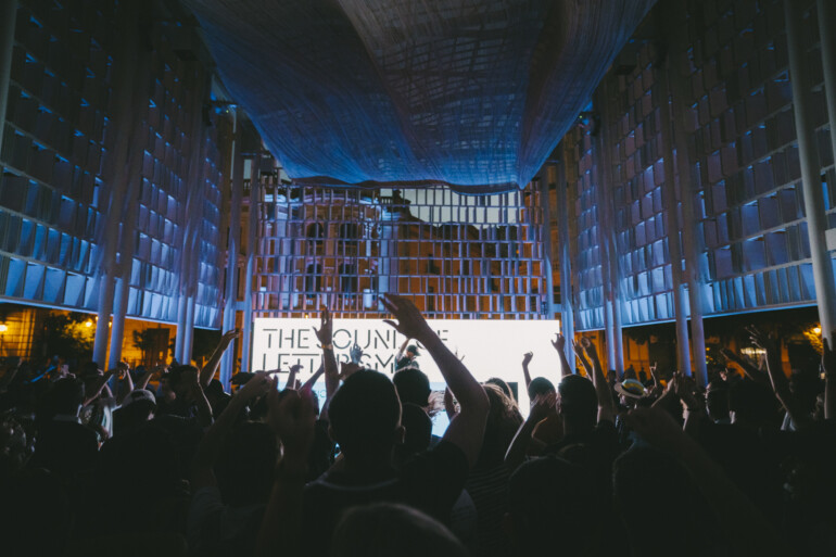 Las proyecciones toman forma de escultura láser y evocan el diseño gráfico y editorial sobre el pavimento del Àgora, que cobra tridimensionalidad generando elementos de aspecto sólido. Esta ilusión de materialidad permite construir con la luz un lenguaje que es entendido por todos los públicos y apela a la participación y a la interacción física. En ese mismo sentido, el diseño de la iluminación arquitectónica responde a la voluntad de poner en valor la piel cerámica del Àgora.