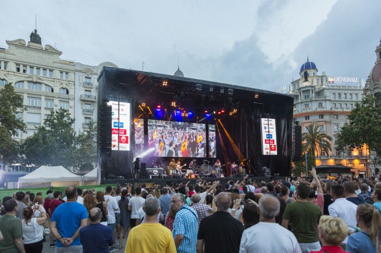 La música también fue protagonista en la Plaza del Ayuntamiento con el concierto con la 97.7 Radio Levante y la colaboración de Turismo València, donde se pudo disfrutar de las actuaciones de Bitches deejays (20.30 horas), Bombay (21.00 horas), Amatria (22.00 horas), Niños mutantes (23.30 horas) y Aníbal Gómez DJ (01.30 horas).