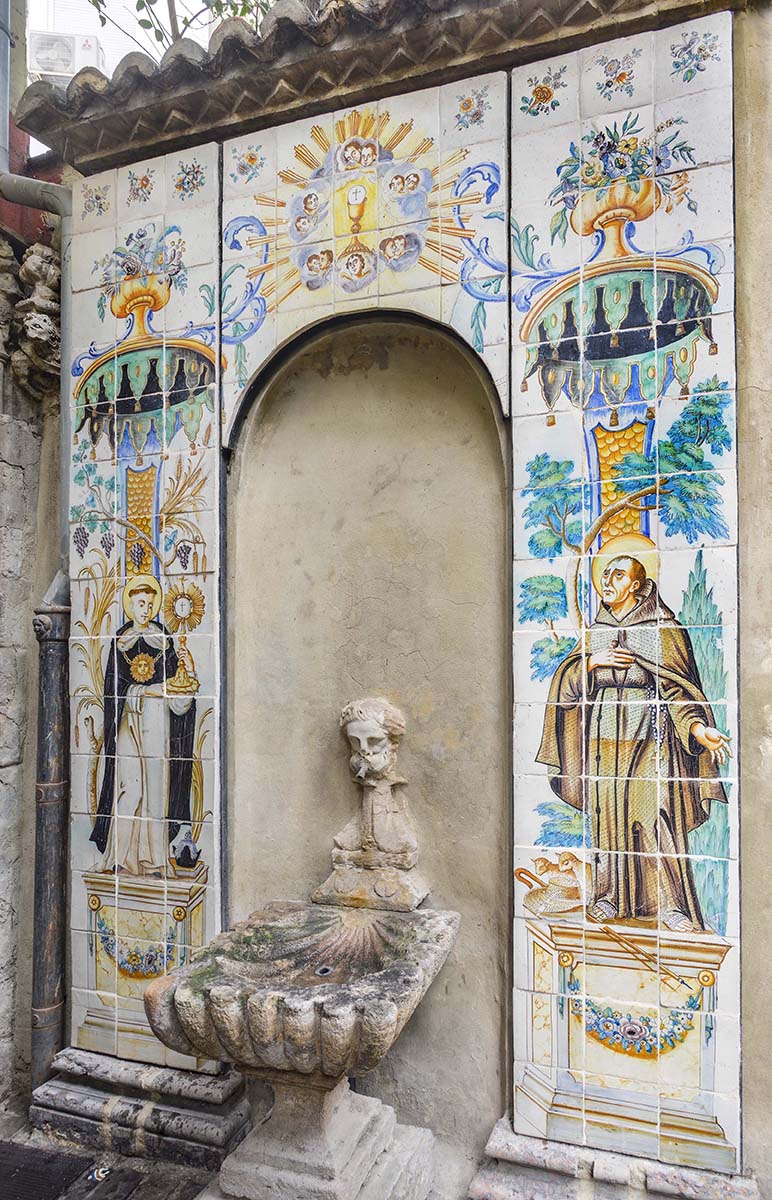 El Ayuntamiento de Valencia ha restaurado, de forma integral, el panel Alegoría eucarística con San Pascual Bailón y San Felipe Neri, la pieza de mayores dimensiones de la colección de cerámica arquitectónica conservada en los muros laterales del jardín interior de la Casa Museo Benlliure.