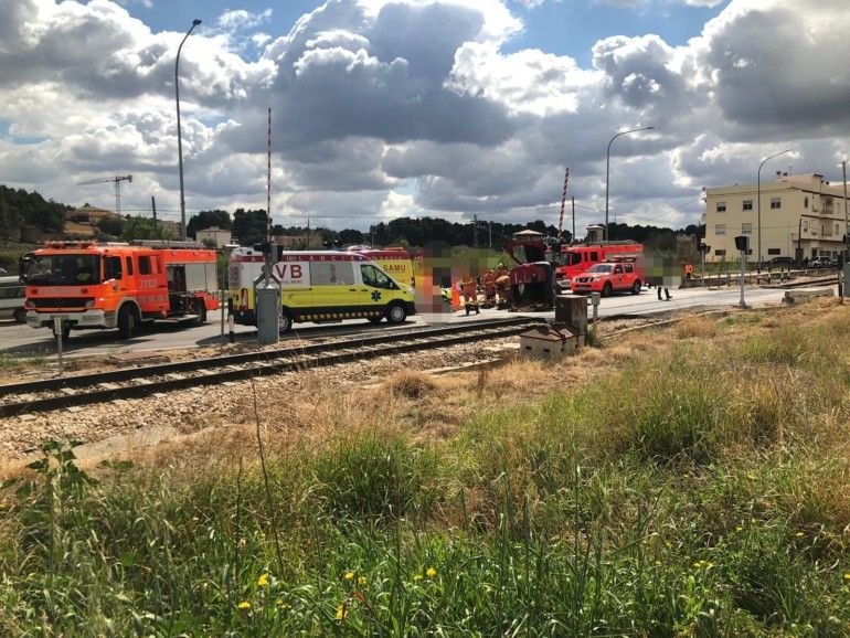 Vuelca una furgoneta sobre las vías del tren tras colisionar con un coche en Chiva